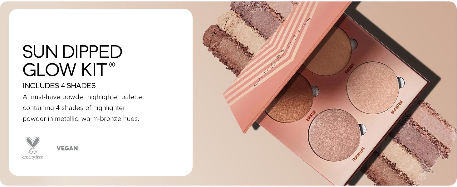 Anastasia Beverly Hills Sun Dipped Glow Kit is a must-have powder highlighter palette containing 4 shades of highlighter powder in metallic, warm-bronze hues.